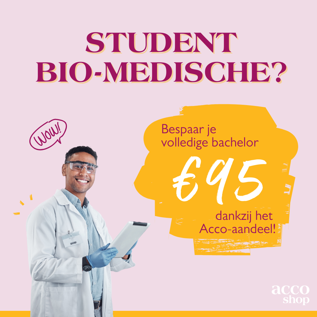 Het is soms moeilijk in te schatten hoeveel je nu echt bespaart binnen jouw opleiding. We hebben daarom voor jou de berekening gemaakt. Als je je studieboeken en cursussen aankoopt met het Acco-aandeel bespaar je onderstaand bedrag.* Kijk hieronder naar de opleiding die je volgt en ontdek hoeveel jij bespaart.