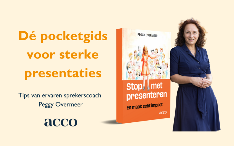 Sprekerscoach Peggy Overmeer helpt sprekers al 25 jaar bij het geven van impactvolle presentaties. In haar boek Stop met presenteren deelt ze al haar tips & tricks in een handige pocketgids. Wij teasen vandaag drie tips uit haar boek.